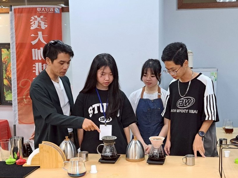 「義起探索 Future Camp」最大的特色,在於課程設計不流於介紹,而是強調「直接上課、真實學習」。活動整合校內各學院教學資源,引導高中生實際走進各學院專業學習場域,透過實作、討論與沉浸式體驗,理解不同學門的學習邏輯、專業養成模式與未來發展方向,提前感受大學課堂的真實樣貌。在課程內容上,智慧科技學院開設「Web 0到1」的網站系統建置實作課程,讓學生親自體驗從構想到實作的軟體工程流程,實際理解工程師的工作樣態;工學院則推出結合 AI 與 3D 列印的數位雕塑課程,引導學生思考科技如何成為創作與表達的新工具。管理學院「雙豆物語」課程以咖啡豆與可可豆為主題,從產地溯源、加工流程到風味分析,將抽象的管理概念轉化為可操作、可感知的學習體驗;傳播與設計學院開設「未來影像實驗室:AI與電影革命」,結合影像敘事、生成式 AI 與新媒體應用,帶領學生理解內容產業在科技浪潮下的轉型趨勢。此外,國際學院「AI ザコゑペ! マギウソ和Хцみу」課程,以語言、文化與 AI 圖像生成為核心,培養學生的跨文化理解與創作能力;醫學相關課程則從科學角度切入身心健康議題,包括醫學院「科學擁抱紓壓:感覺統合與調節」,以及醫學科技學院「人體益生菌:微生物與情緒的前沿科學」,引導學生認識感覺統合、微生物研究與情緒健康之間的最新研究方向。